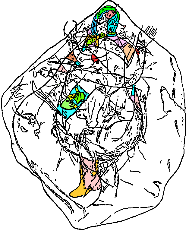 Above is the engraving as published by S. Lwoff, with the exception of the color fill, of course. The generally agreed upon face is very interesting, and as it is a combination of two quite symmetrical pentagonal shapes. Rather than another obese Venus, this engraving reminds me more of the Russian "babushkas".